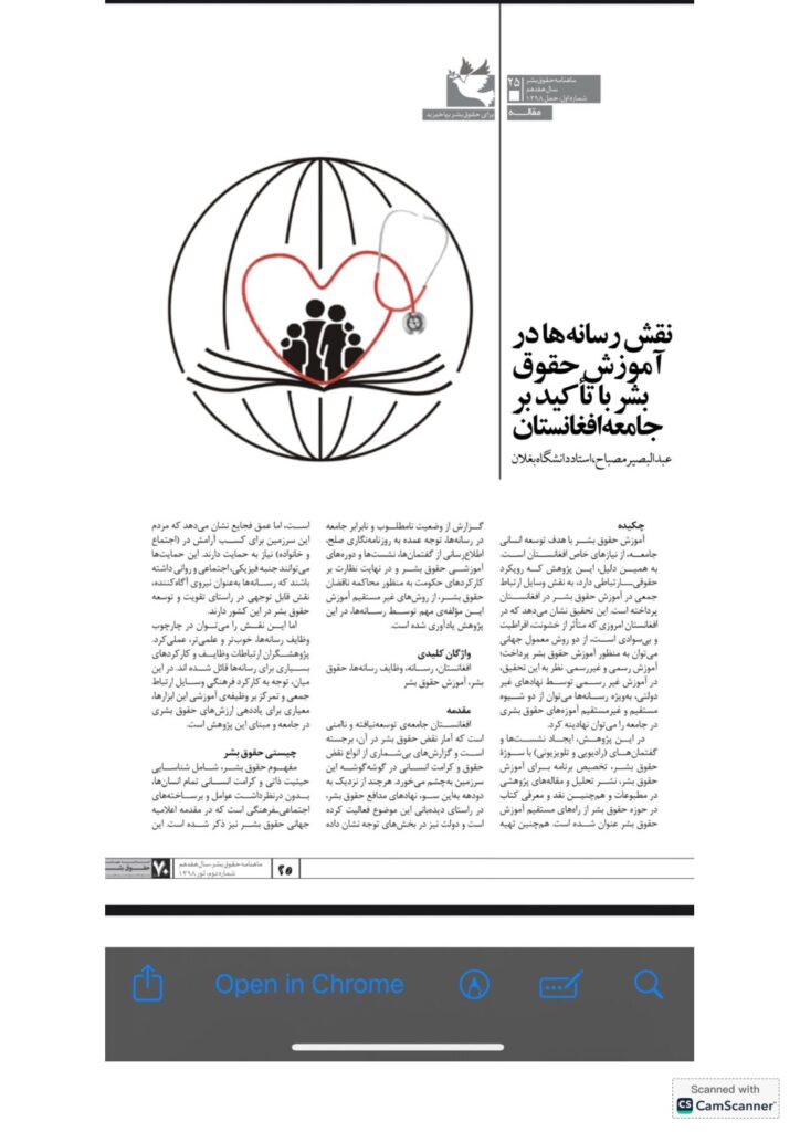 منبع: ماهنامه کمیسیون مستقل حقوق بشر افغانستان، سال هفدهم، شماره اول، حمل/ فروردین ۱۳۹۸، صفحه ۲۵